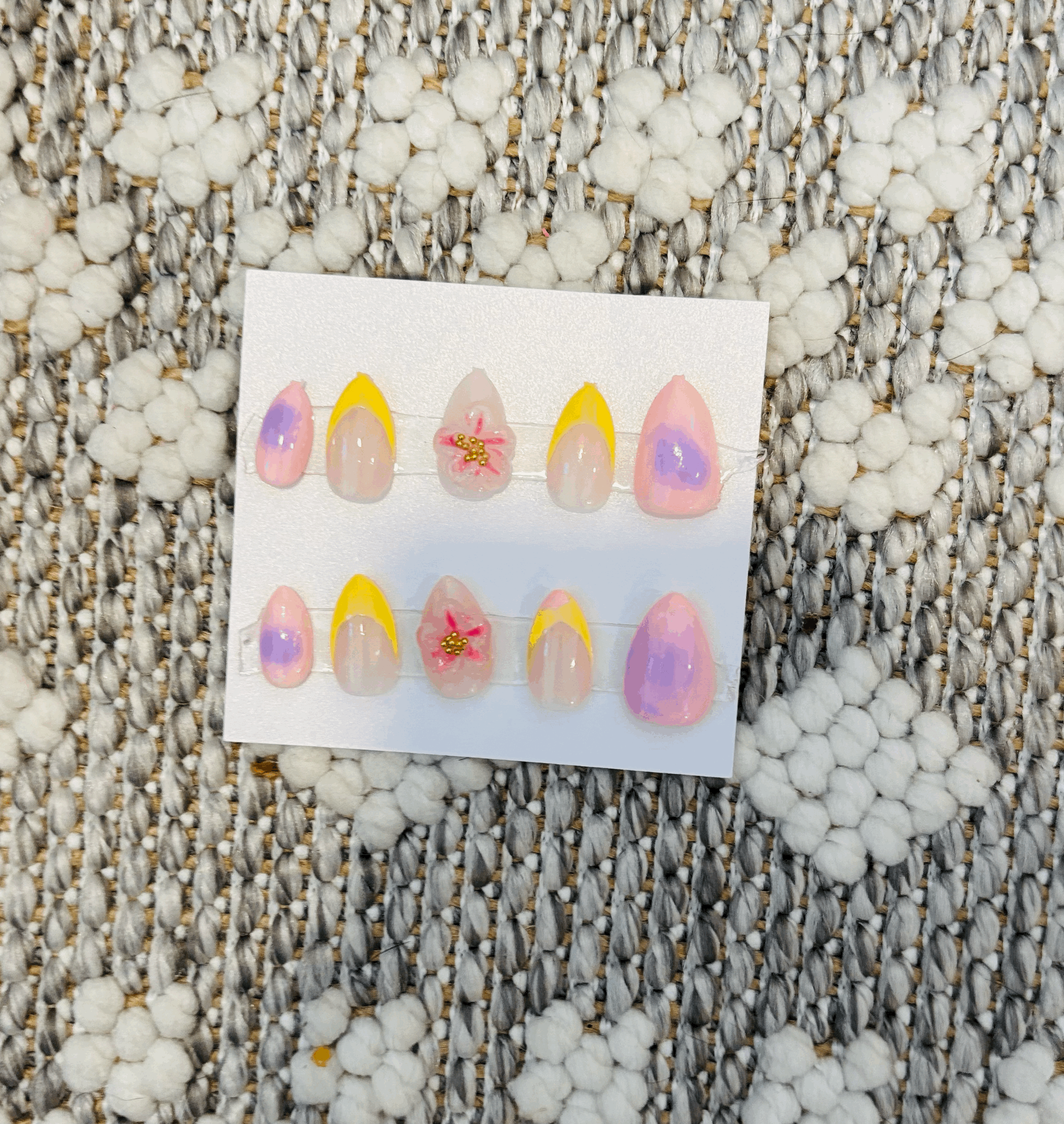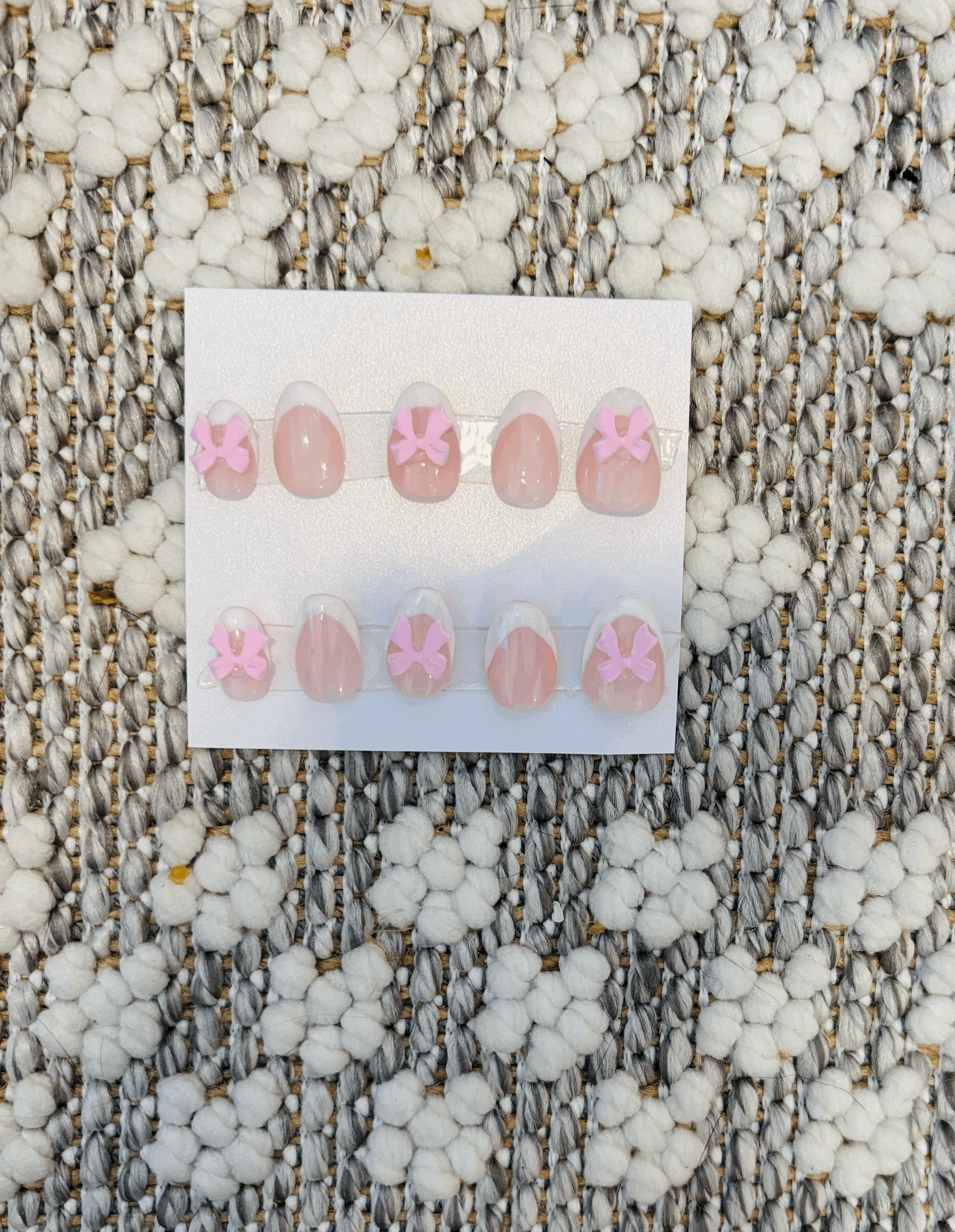 French with bows $15.00 shine pink $15.00 coraline nails $15.00 summer flower $15.00 custom set! $20.00 mystery nail set? $15.00 collection $50.00 sunset nails $15.00 coral nails $15.00 costal nails $15.00 tie dye nails $15.00 8 ball nails $15.00